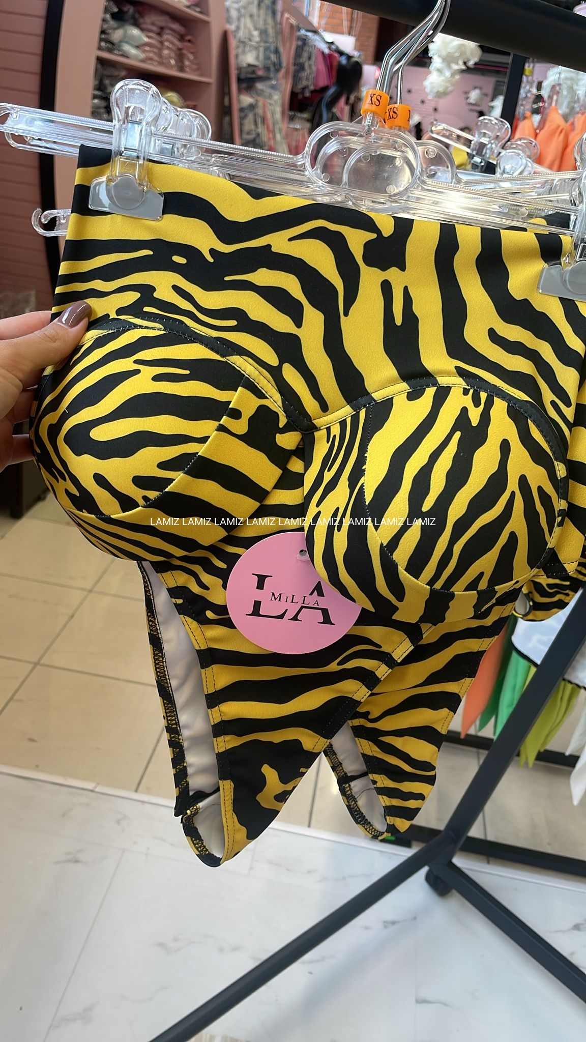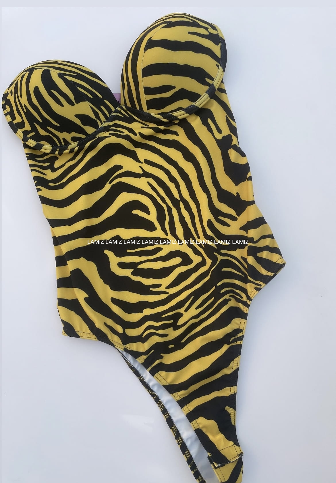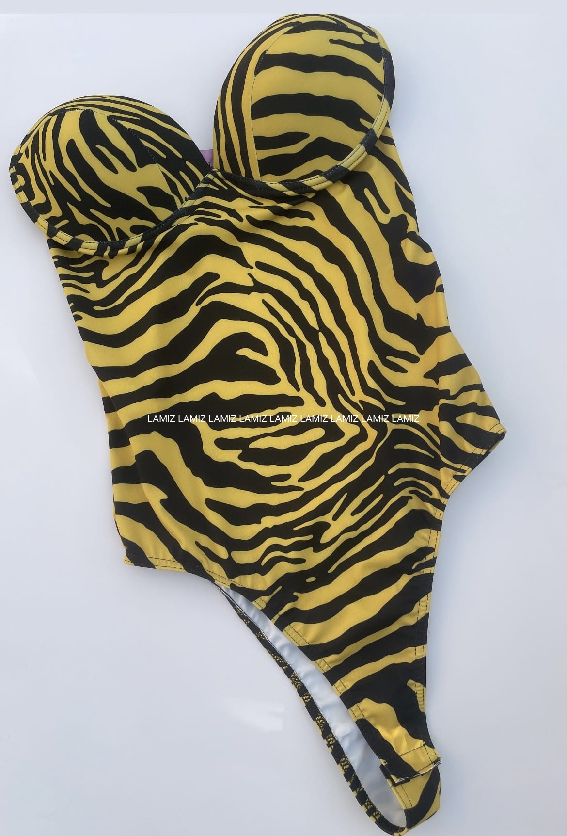 Body lamilla zebra żółto czarne z usztywnianymi miseczkami