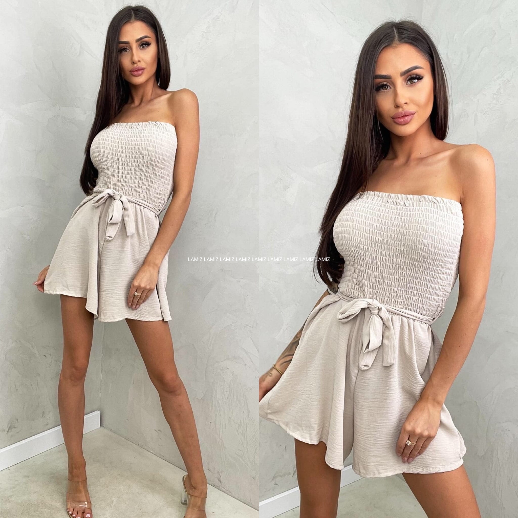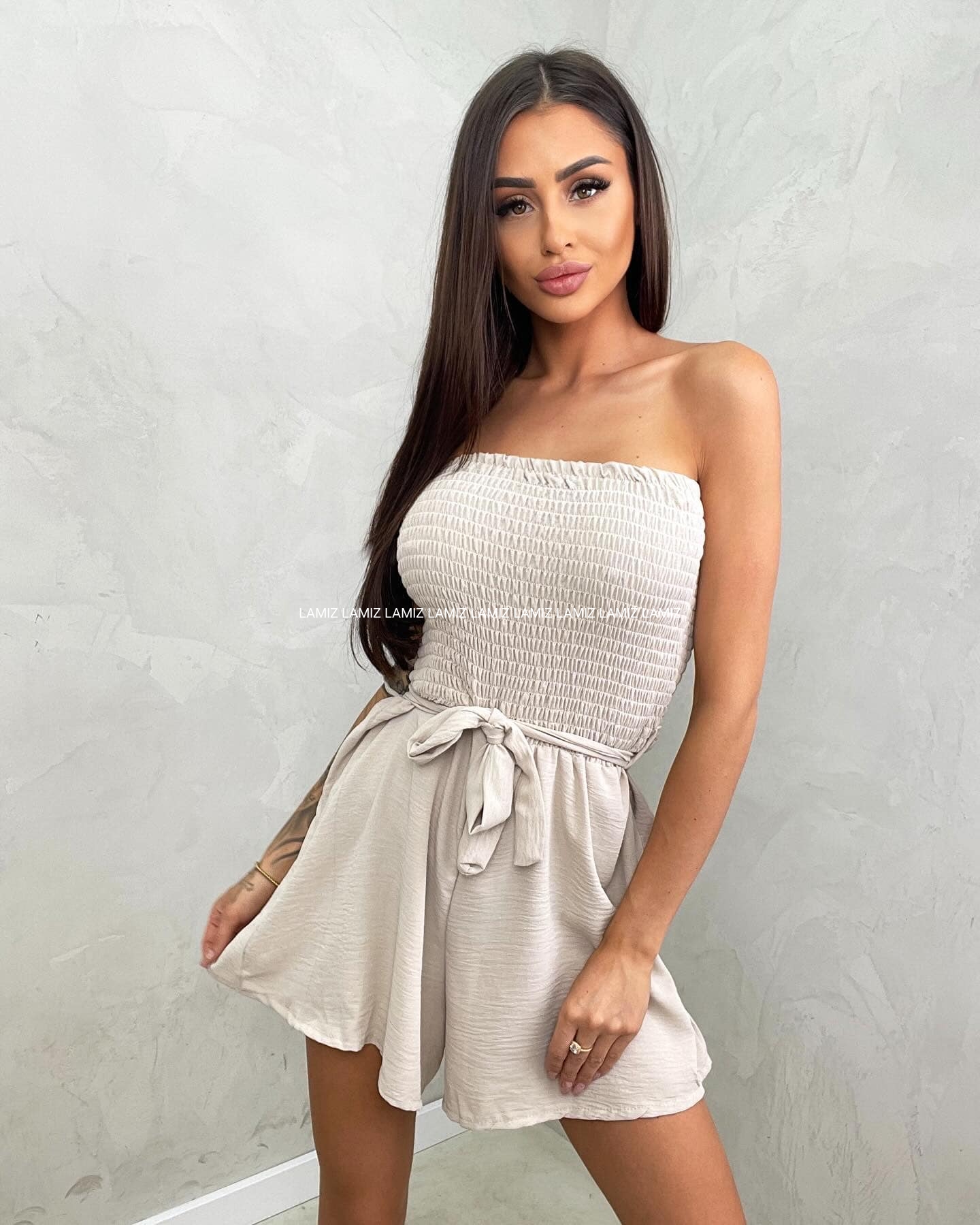 Kombinezon Dubaj beż krótki z szeroką nogawką i gumką w biuście
