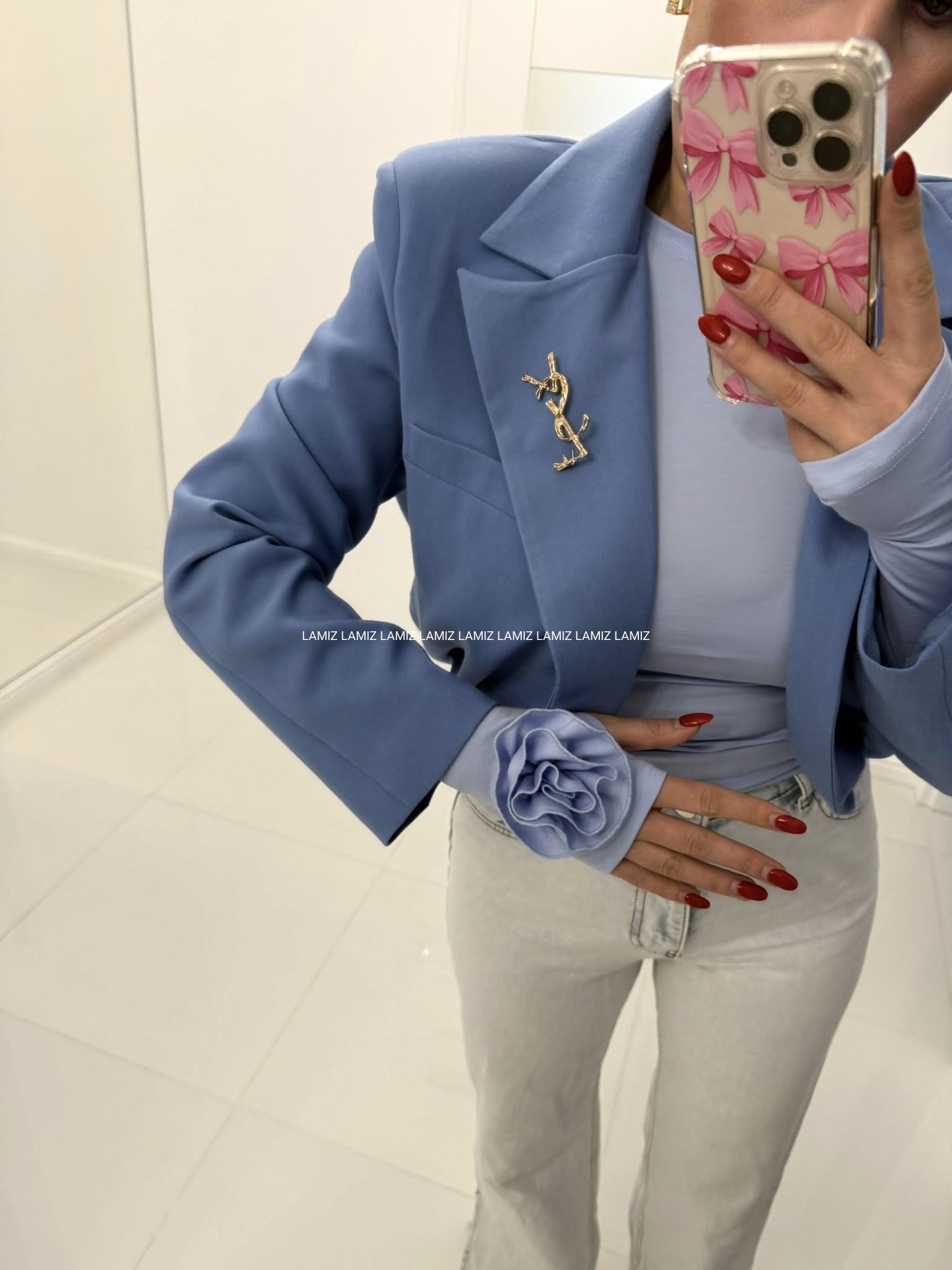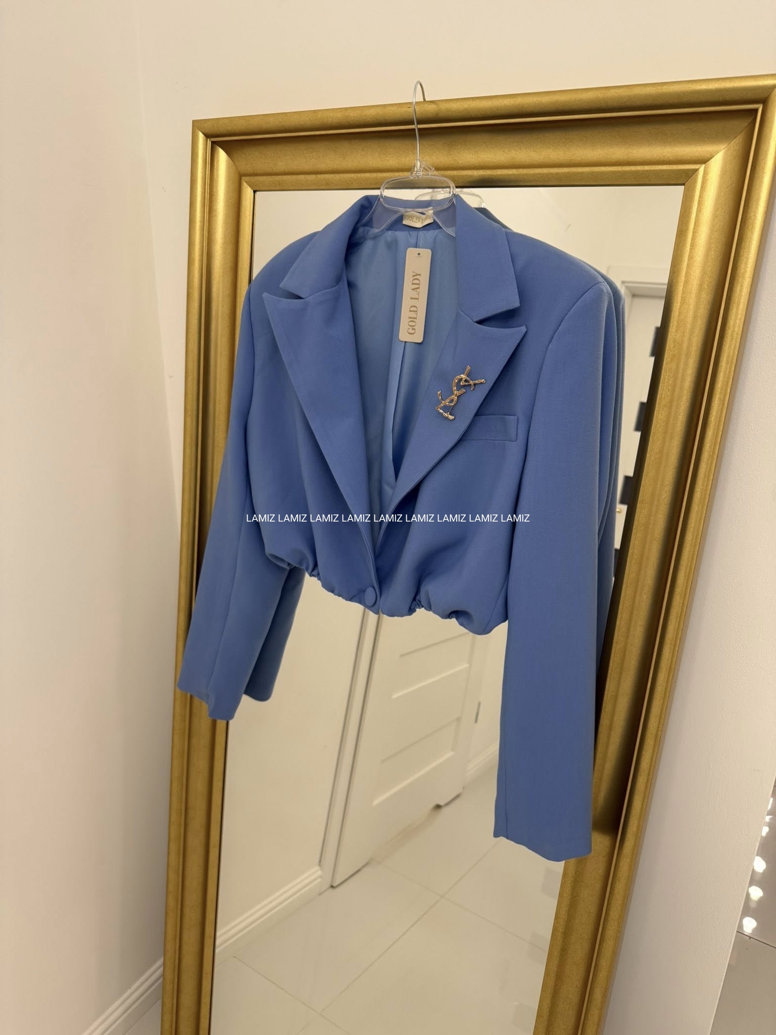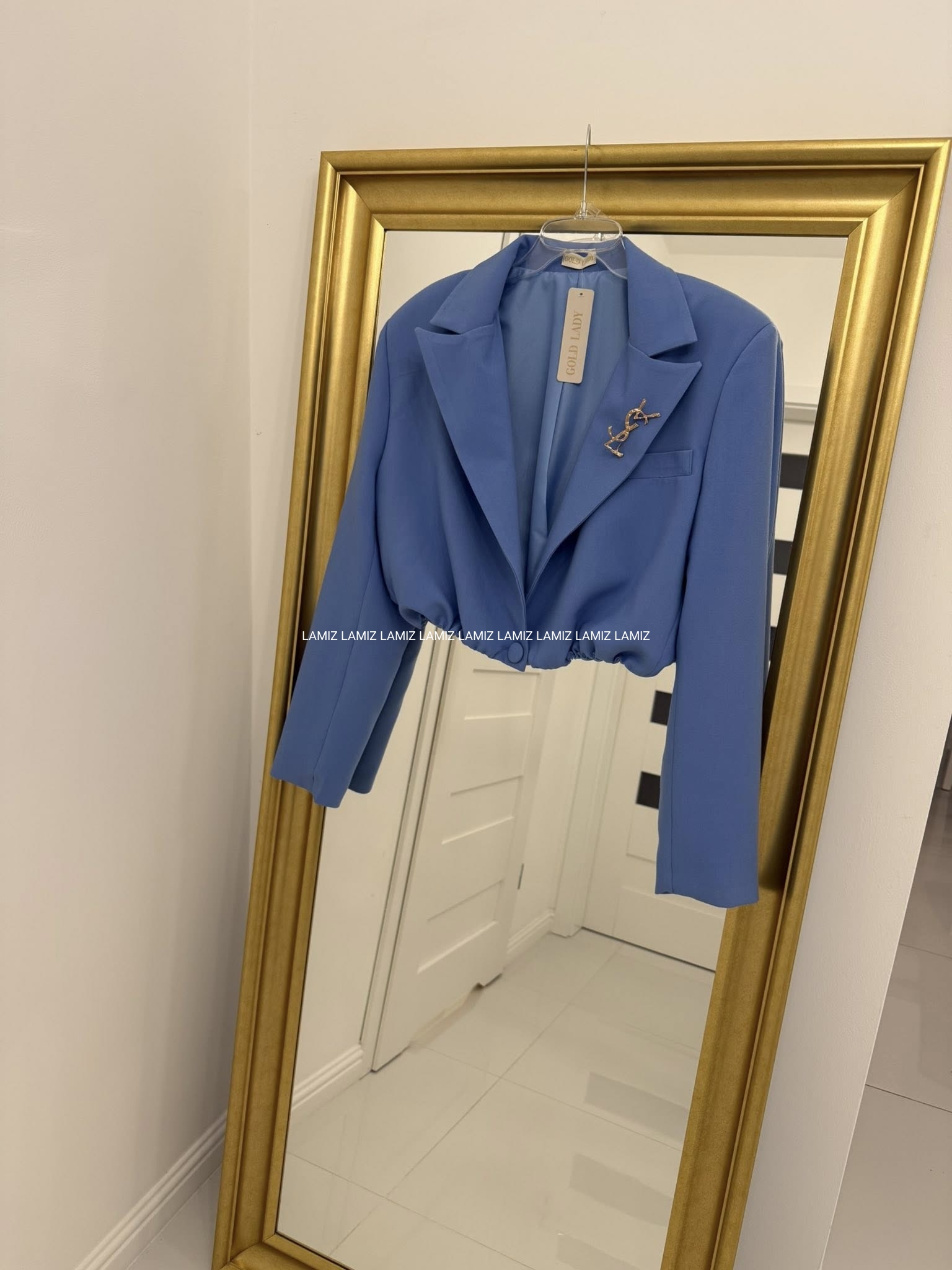 Obłędnie piękna marynarka w stylu bomberki z delikatnymi poduszkami na ramionach. Krój do pasa z gumką u dołu. Podszewka, ozdobny kołnierz + broszka GRATIS! Lekka, absolutnie wyjątkowa i uniwersalna. Wykorzystasz ja do sukienek podkreślając talię oraz do jeansów czy spódnico-szortów. Jakość PREMIUM. Polskie szycie.
