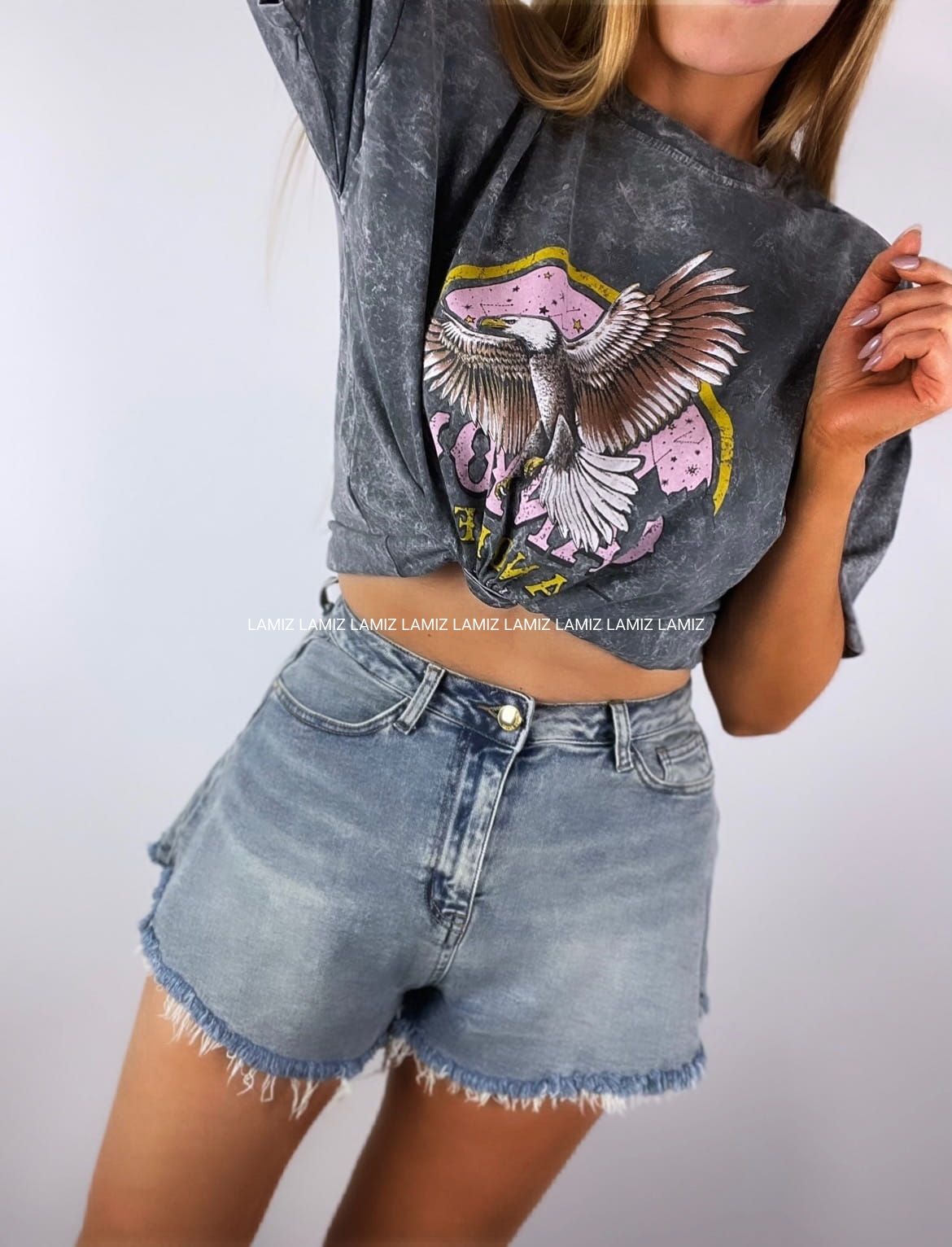 Szorty styl vintage ,delikatnie poszarpany materiał u dołu doda charakteru całości, a niebanalny krój doskonale zgra się z Twoją sylwetką i zagwarantuje dziewczęcy look. Zapinane są na suwak i guzik, a z przodu i z tyłu znajdują się funkcjonalne kieszenie