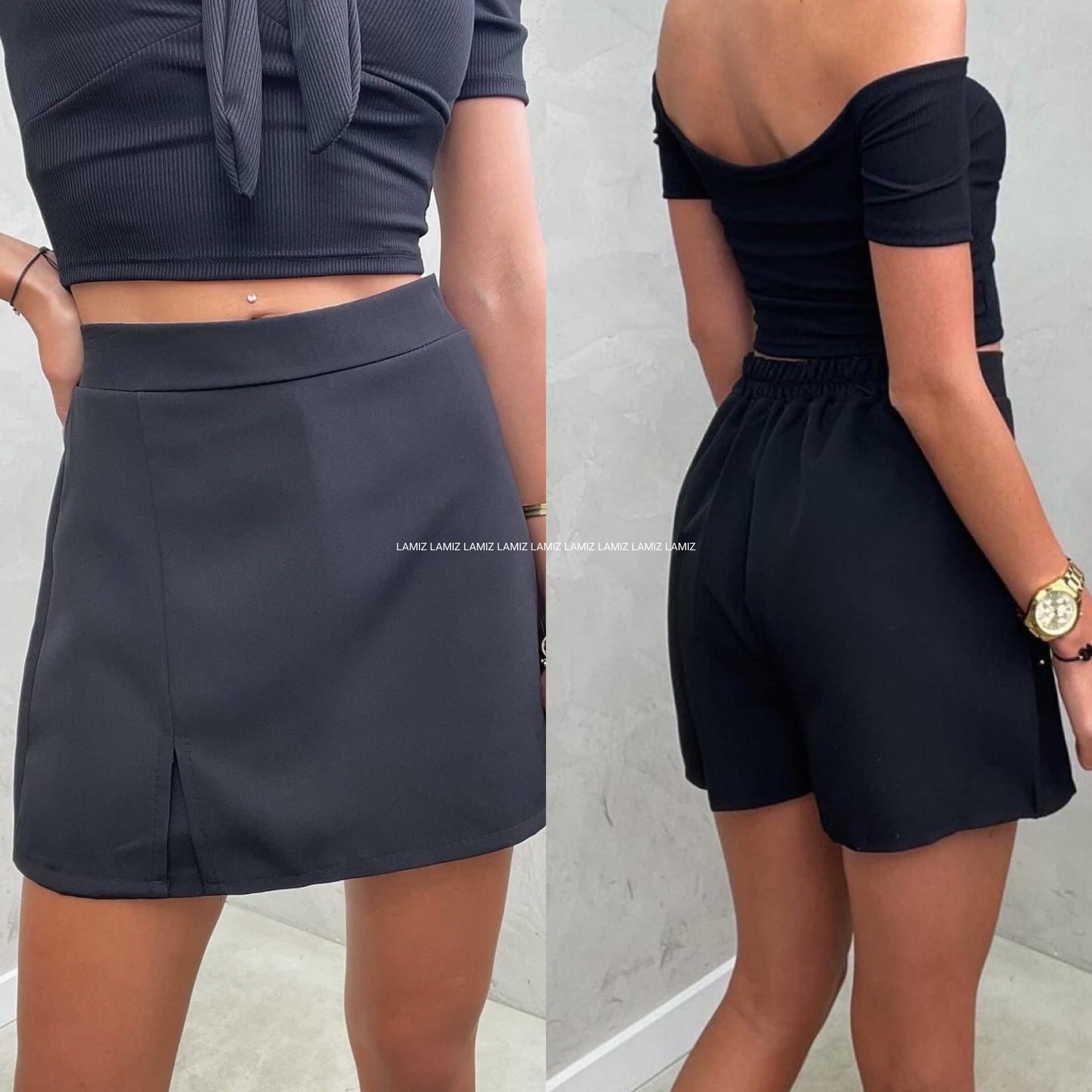 Spódnico spodenki czarne z rozcięciem