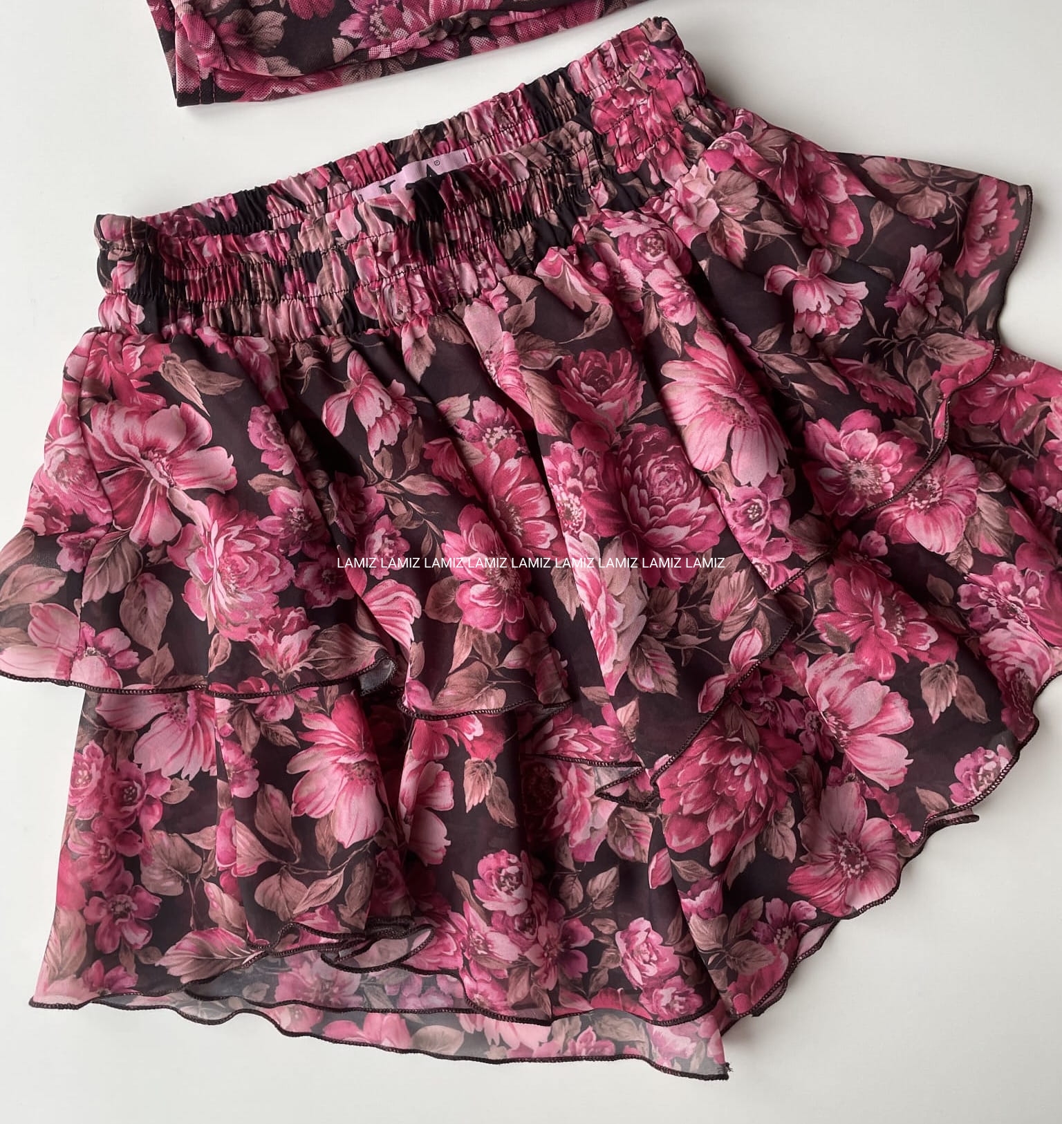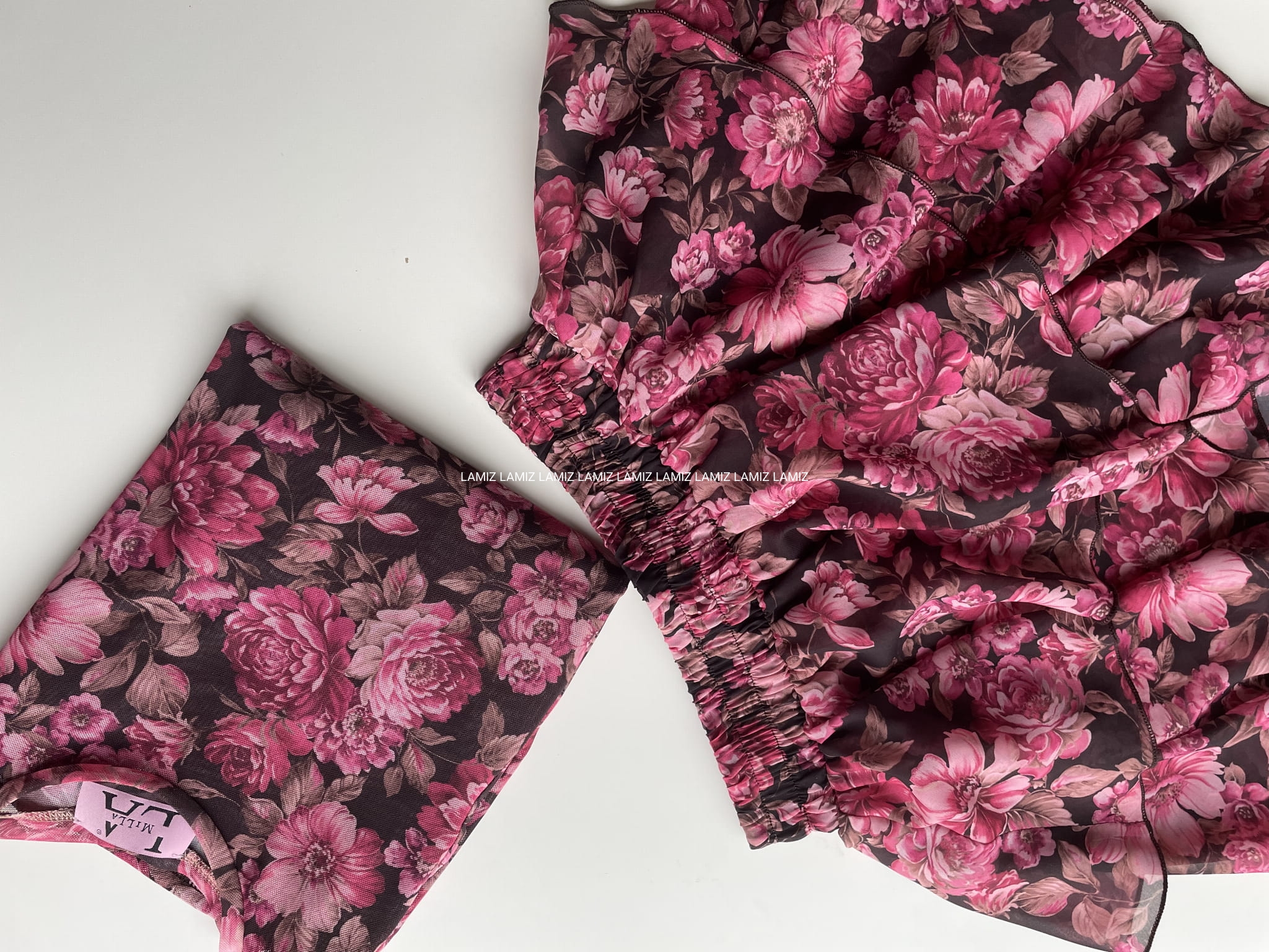 Marynarka Rosalia lamilla w kwiaty z dłuższym przodem niebieska