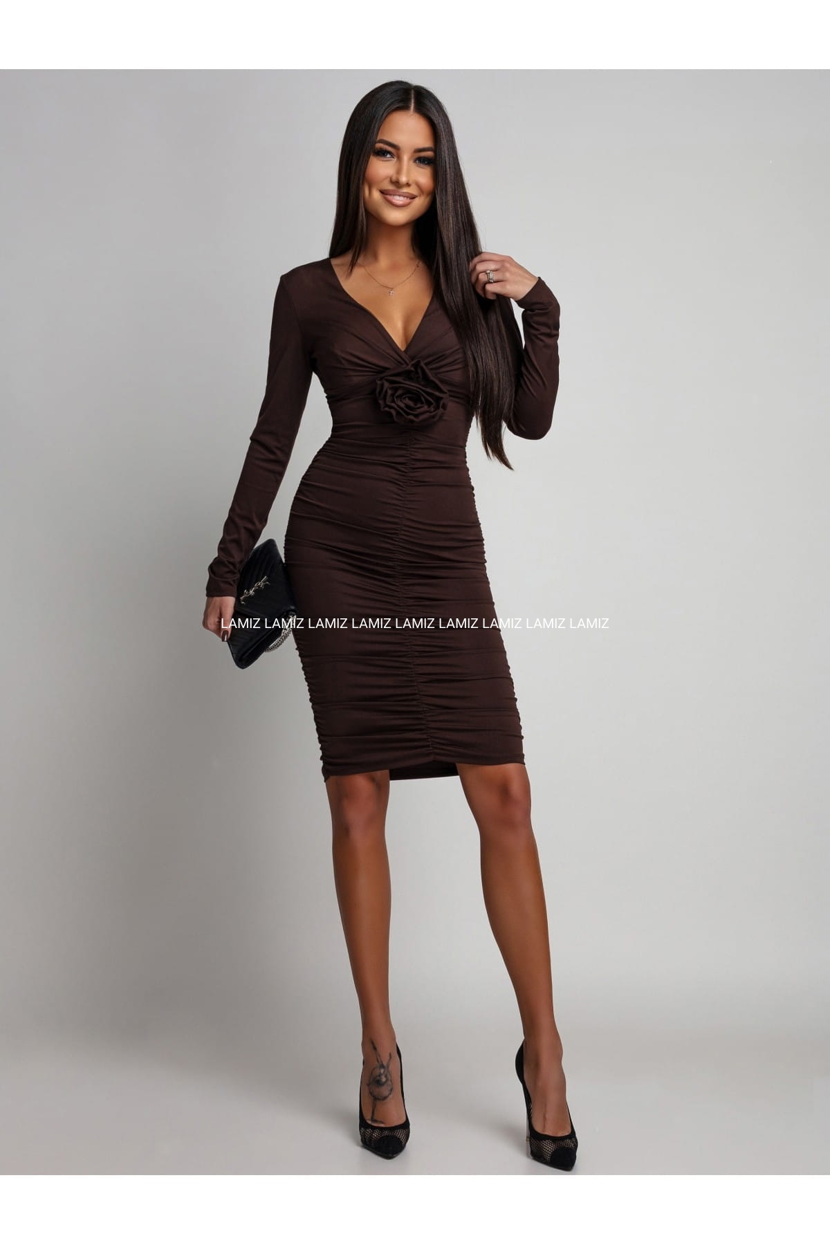 Sukienka czekolada karoline z marszczeniem