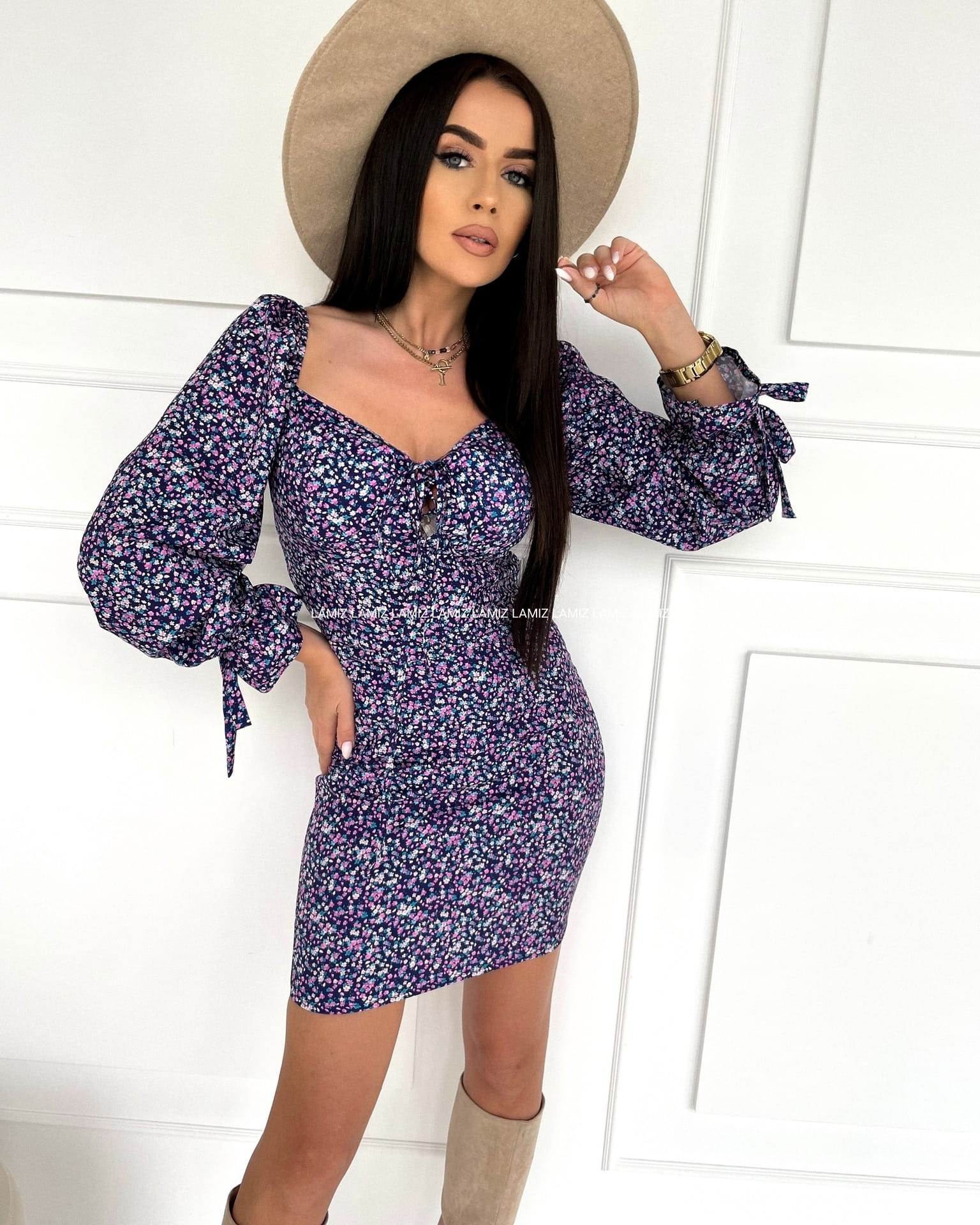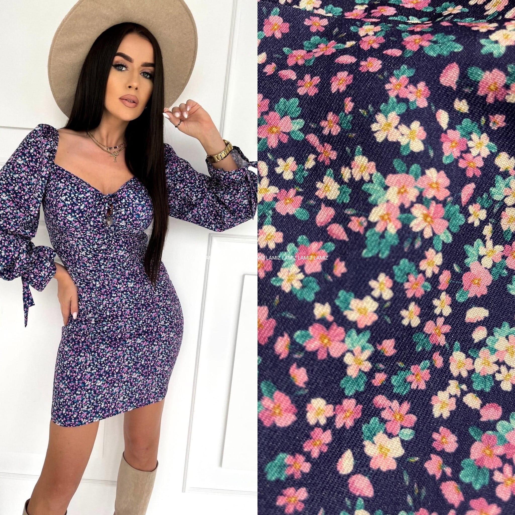 Dopasowana sukienka w kwiaty. Zapinana z boku na zamek. Produkt uszyty w Polsce