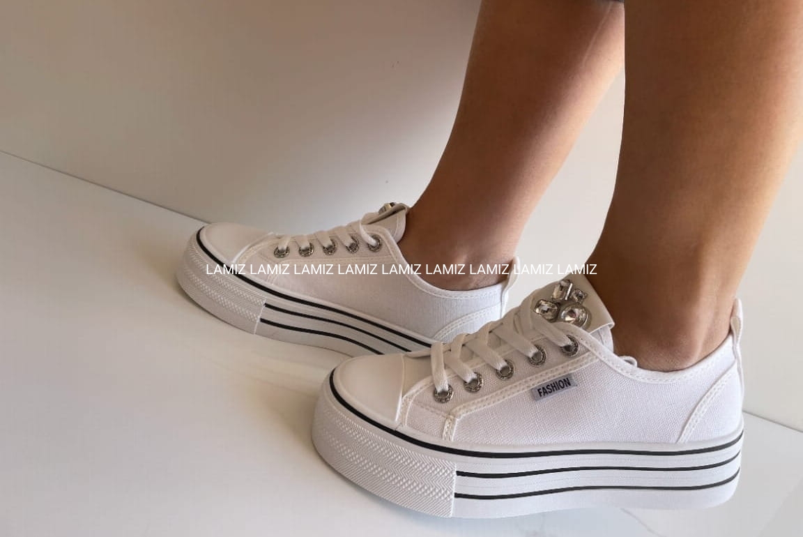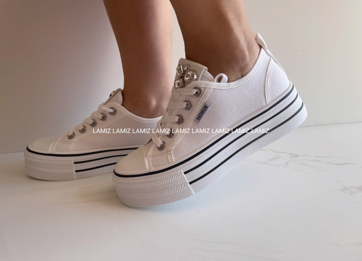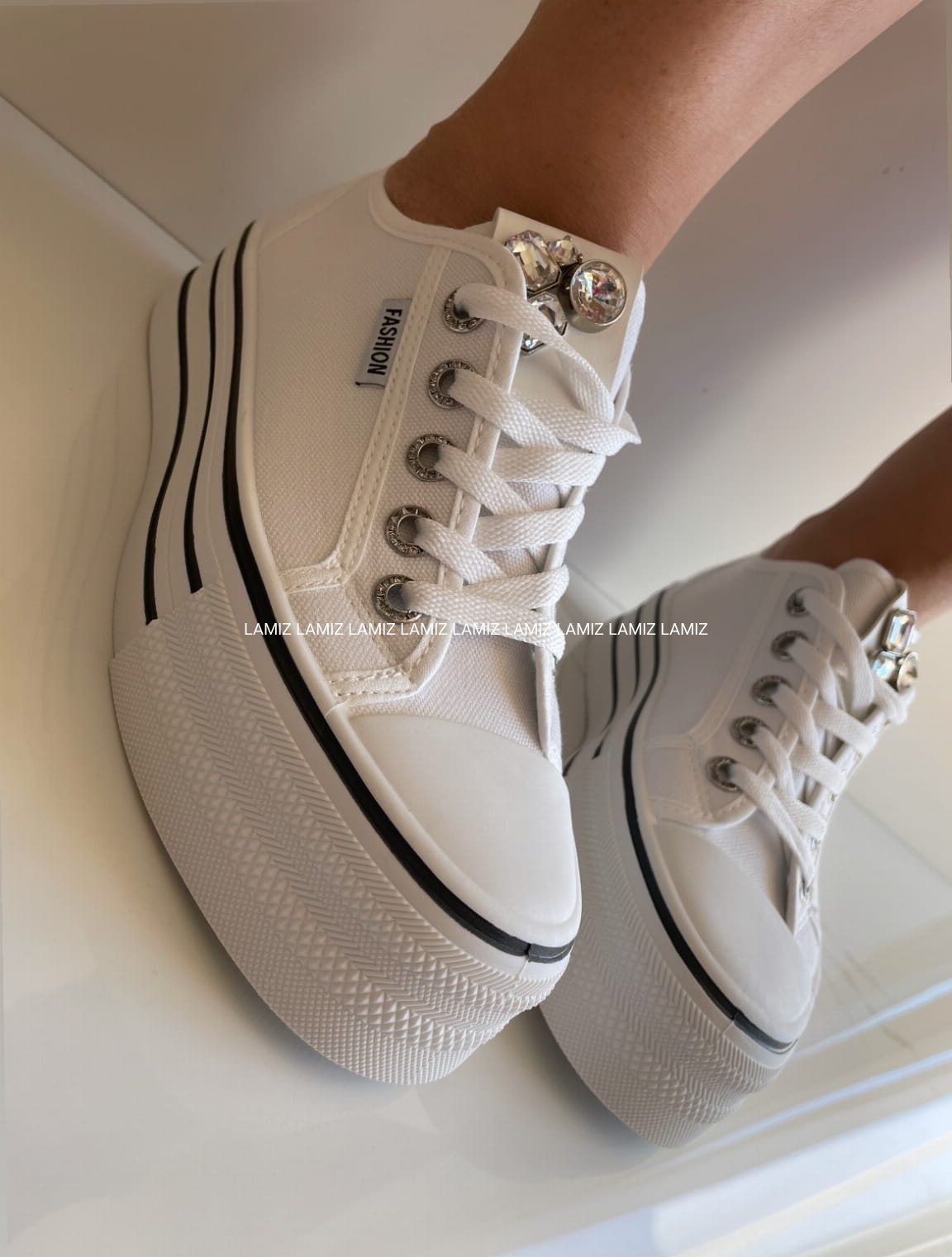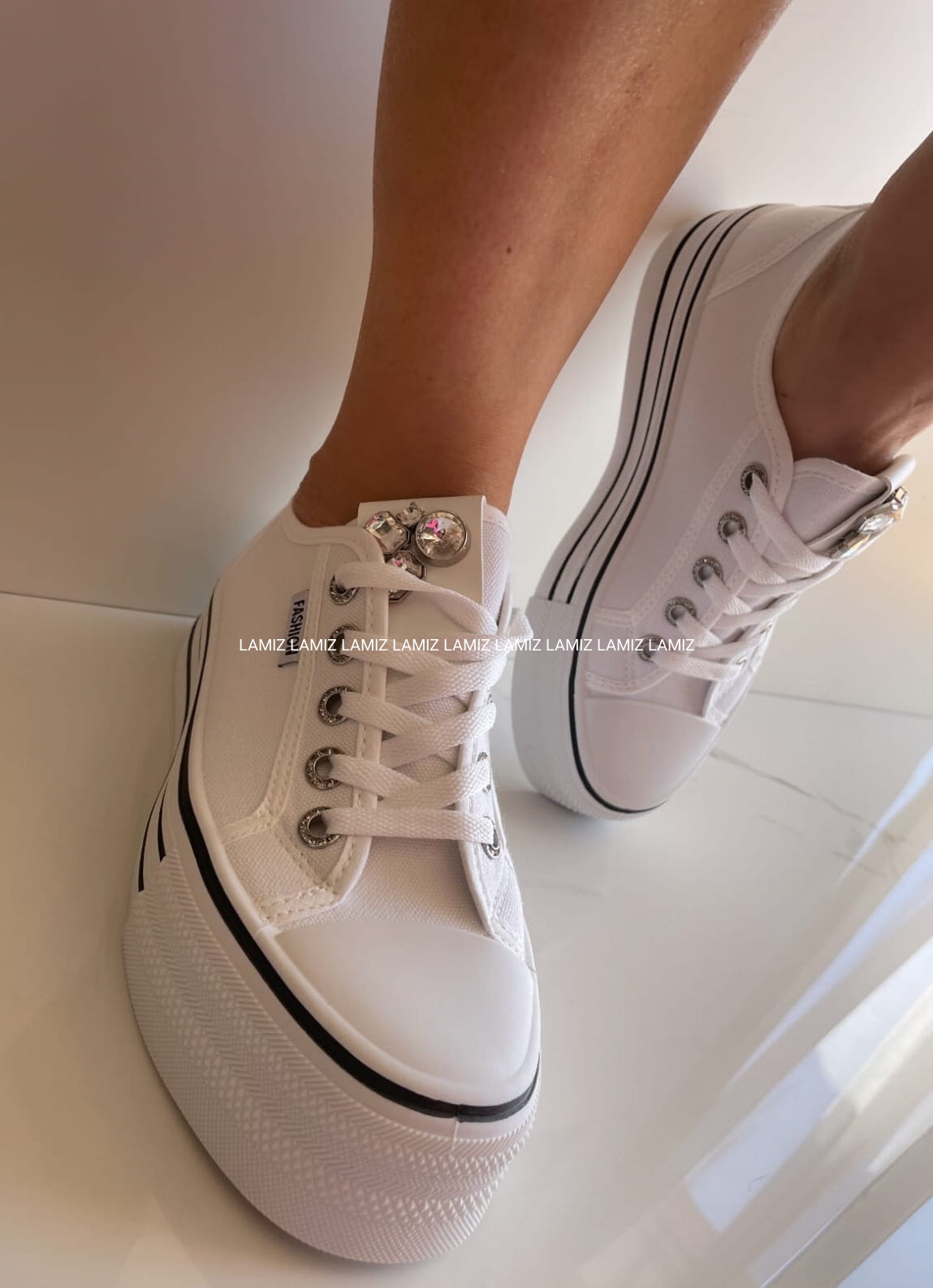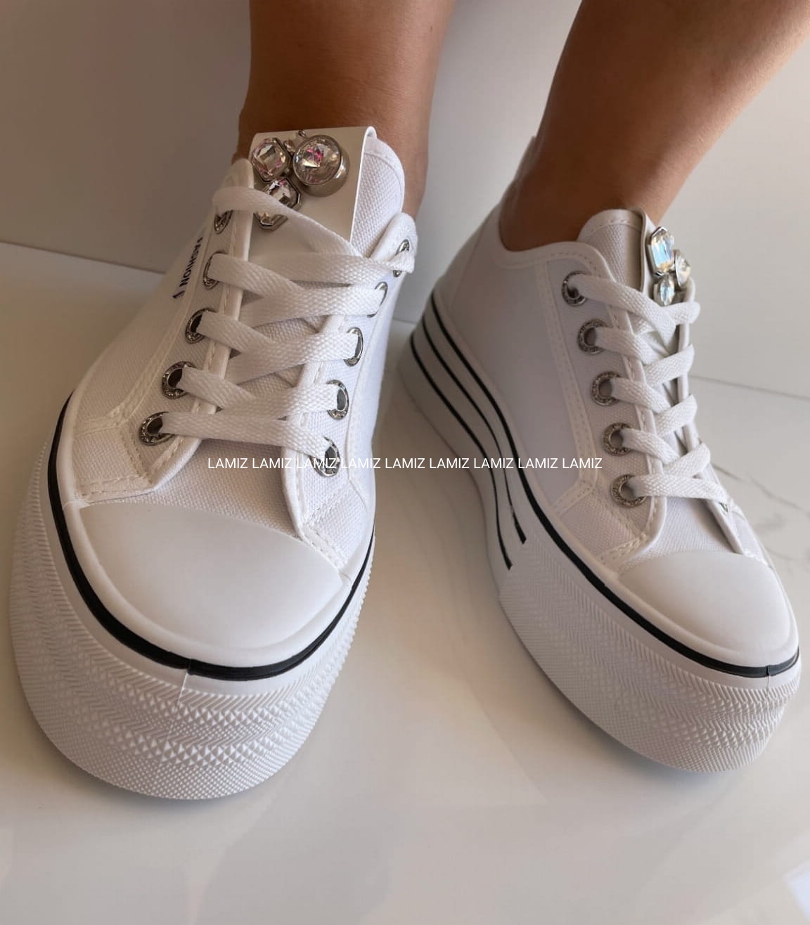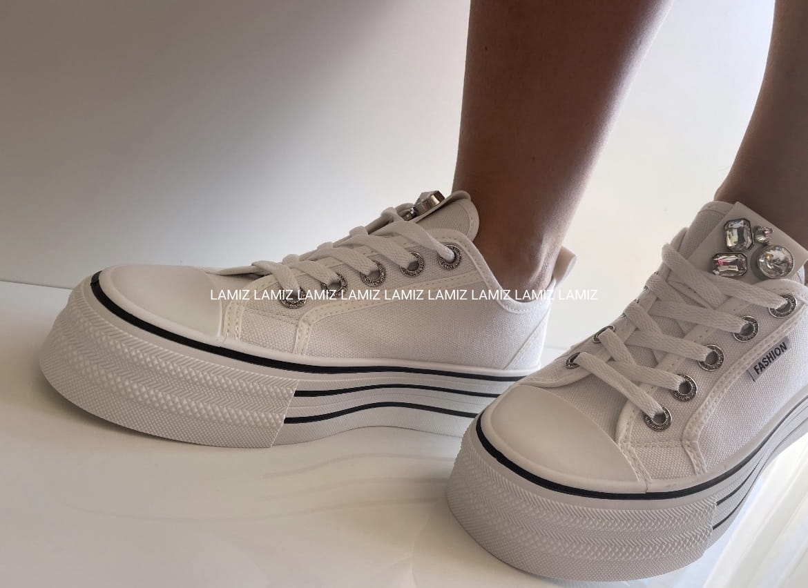 Trampki na grubej podeszwie ecru cyrkonie kamienie