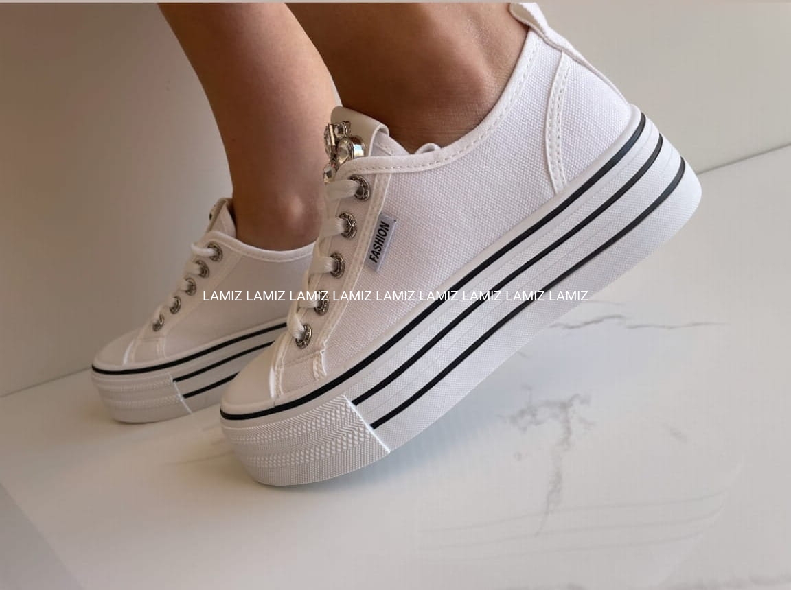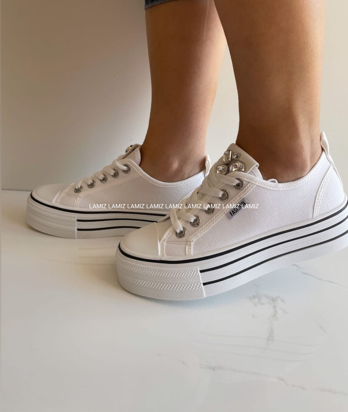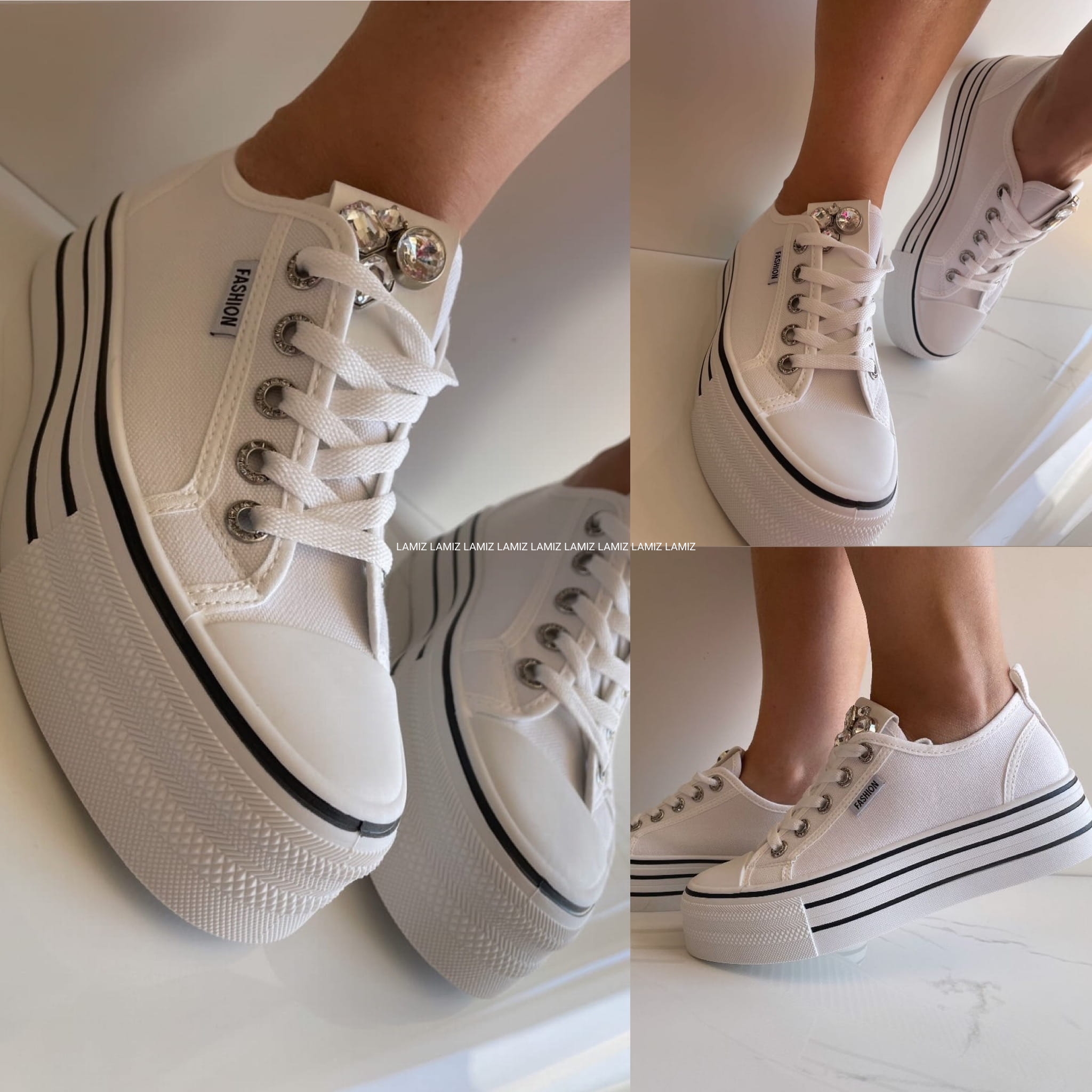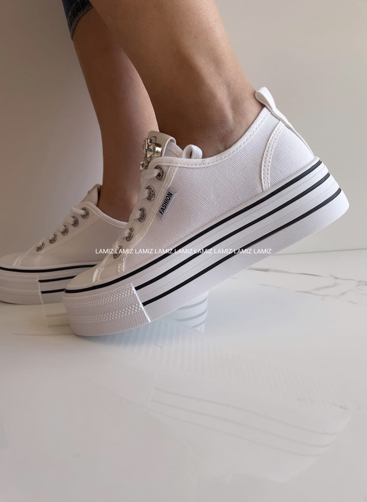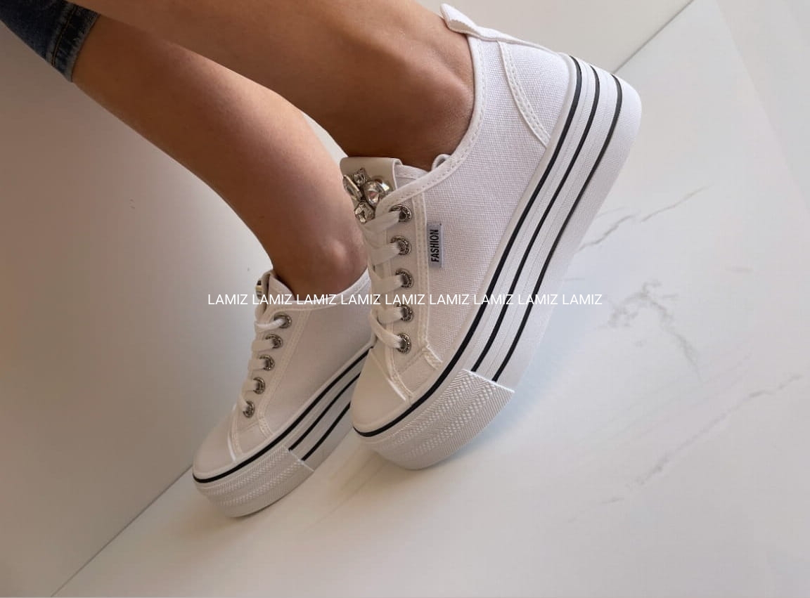 Trampki na grubej podeszwie ecru cyrkonie kamienie
