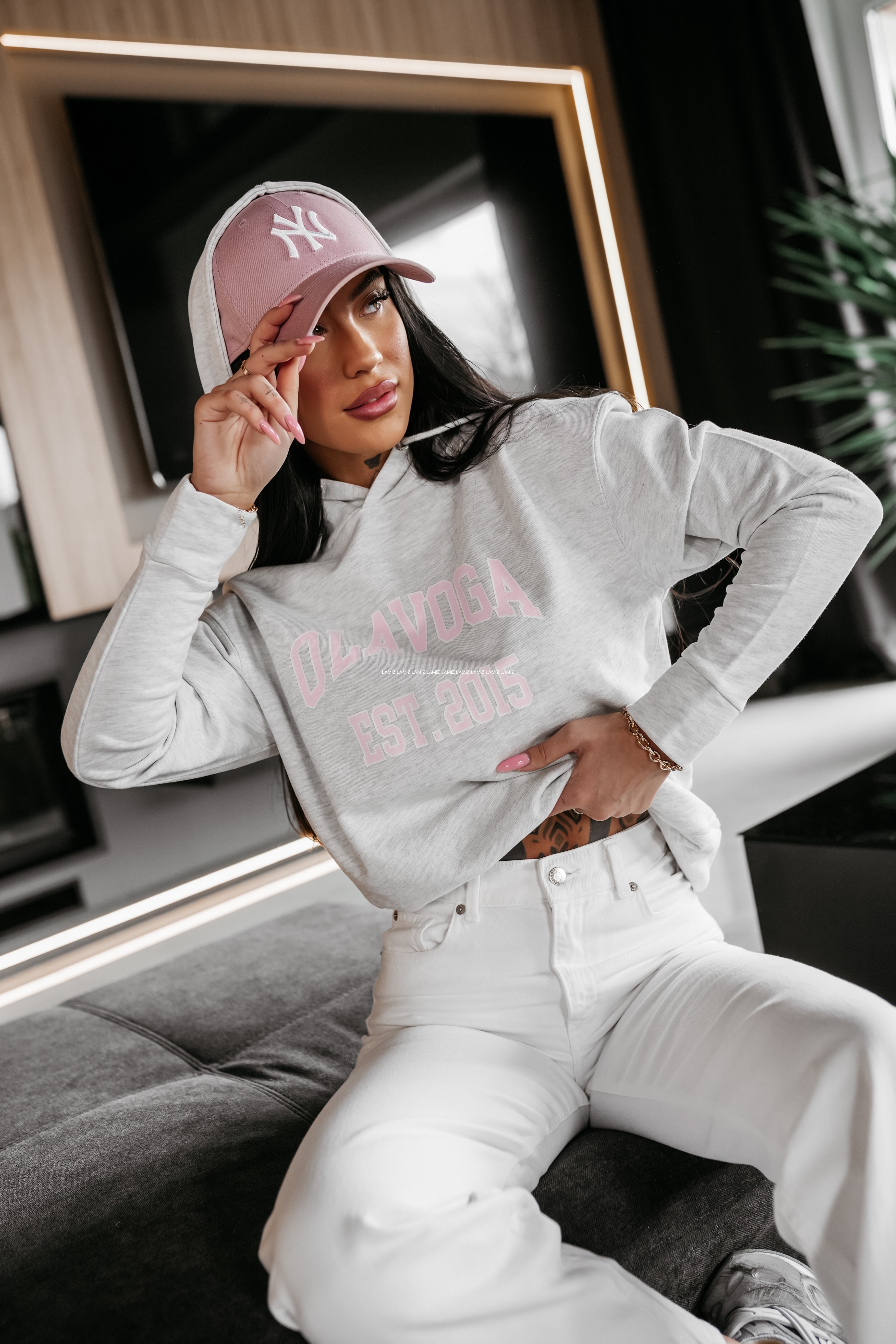 Bluza w stylistyce college - wysokogatunkowa bawełna - kaptur z regulacją na troki zakończone logowanymi agletami - długi klasyczny rękaw - na przodzie wyrazisty nadruk z brandem wykonany szeryfową czcionką