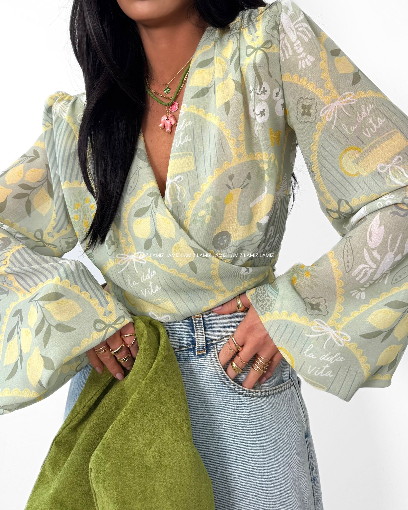 Bluzka z najnowszej kolekcji LA MILLA, wiązana w pasie, uszyta z delikatnego materiału. Krótki krój i mocno bufiaste rękawy podkreślają jej hiszpański temperament.
