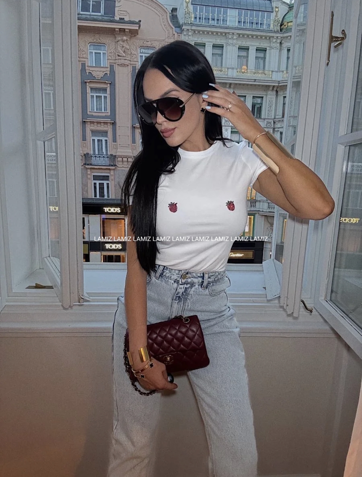 Wzór: dwie małe truskawki (naszyte lub haftowane)