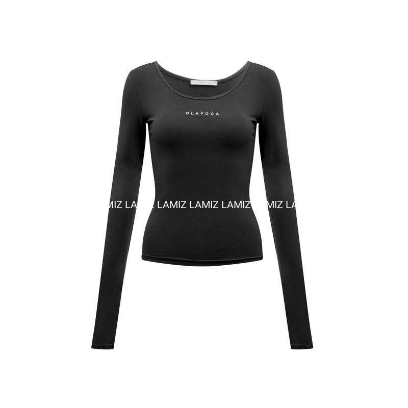 T-shirt OLV, dopasowany krój - długi rękaw - okrągły dekolt - elastyczna tkanina - subtelne haftowane logowanie OLAVOGA