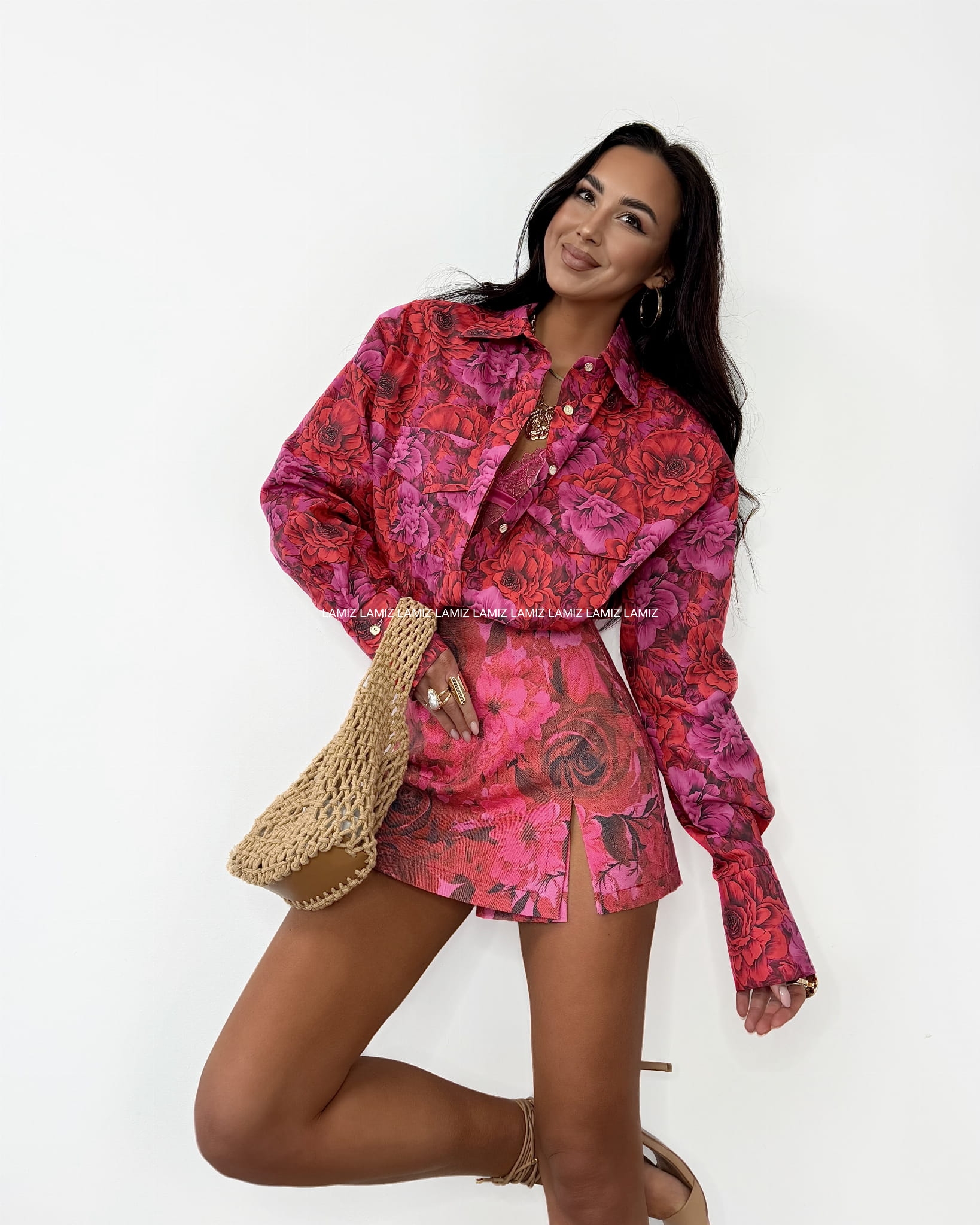 Spódnico-spodenki w kwiaty w odcieniach czerwono-różowych to wyjątkowy element garderoby, który łączy w sobie komfort spodenek i elegancję spódnicy. Wykonane z lekkiego, przewiewnego materiału, idealnie sprawdzą się w ciepłe dni. Kwiatowy wzór w odcieniach czerwieni i różu dodaje im uroku i świeżości, a jednocześnie sprawia, że są bardzo kobiece. Długość do połowy uda sprawia, że są zarówno stylowe, jak i praktyczne - można je nosić na co dzień, jak i na różne okazje.